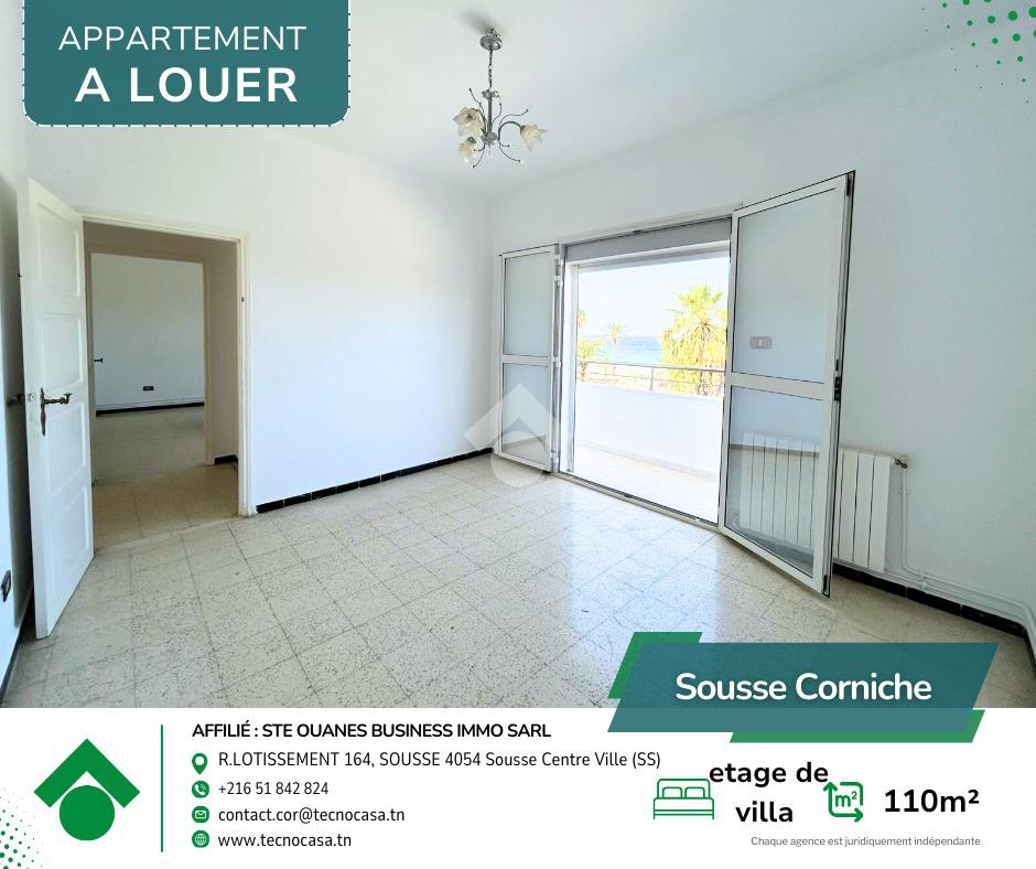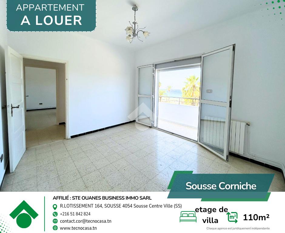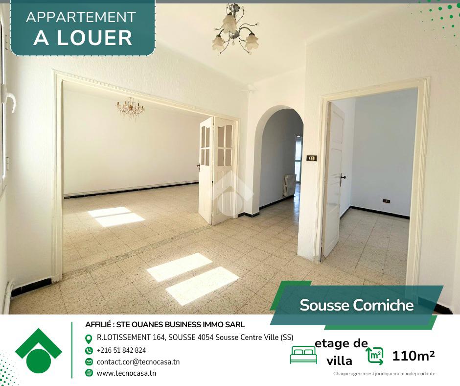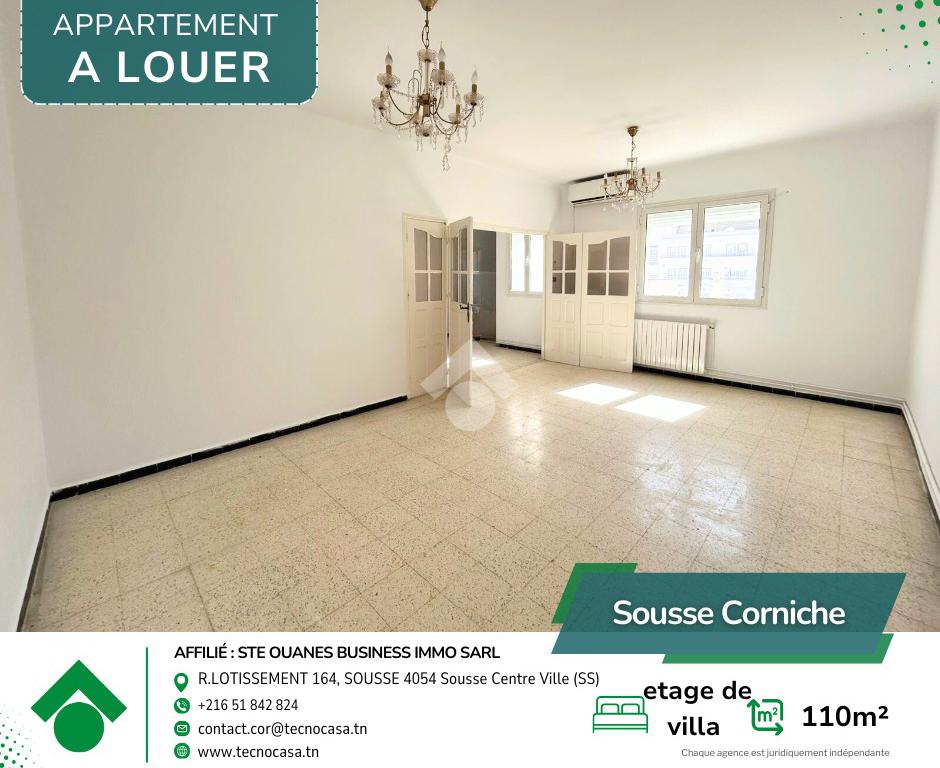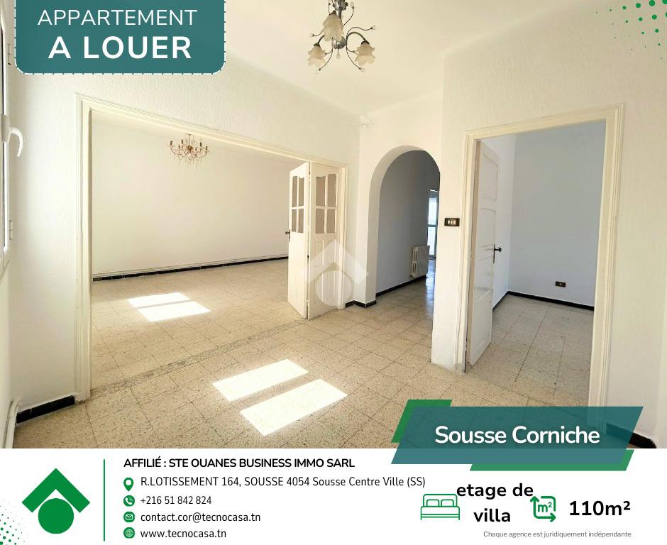 Un étage de villa spacieux, non meublé, situé à la Corniche dans un emplacement stratégique, sécurisé et bien entretenu.