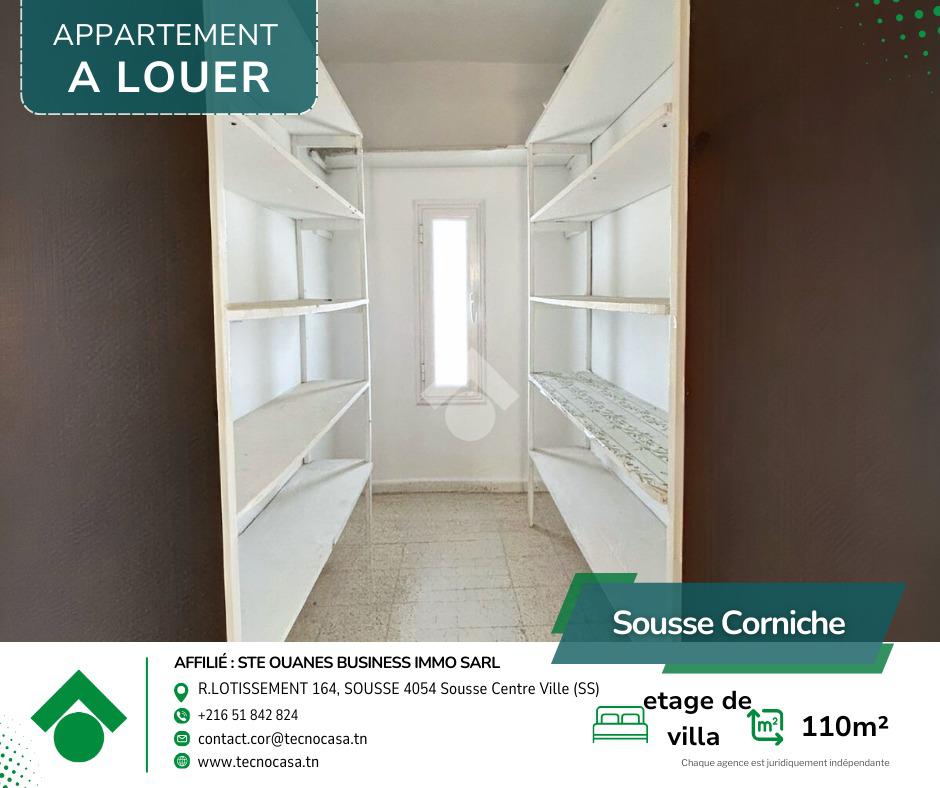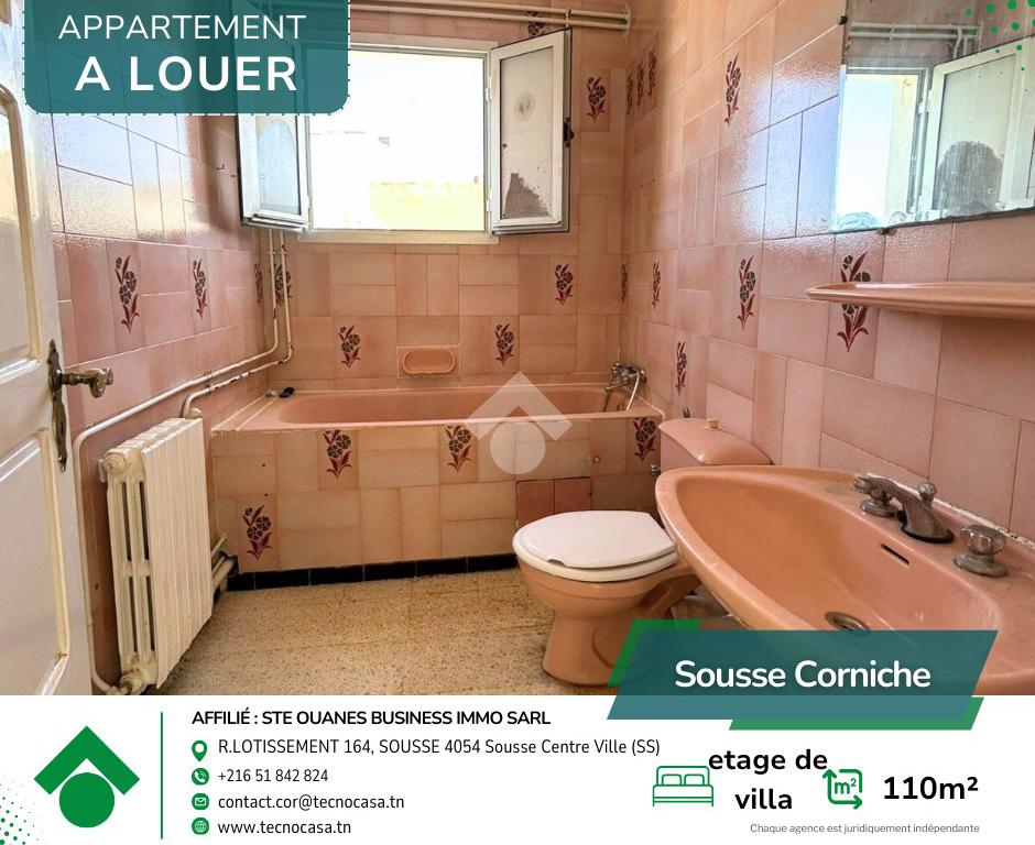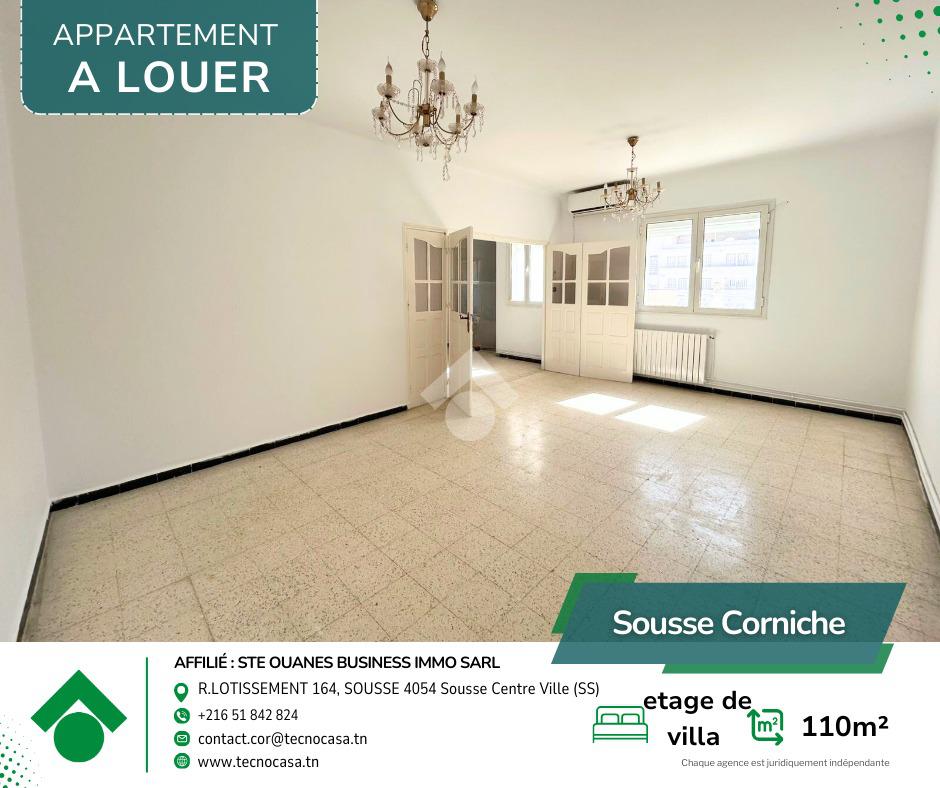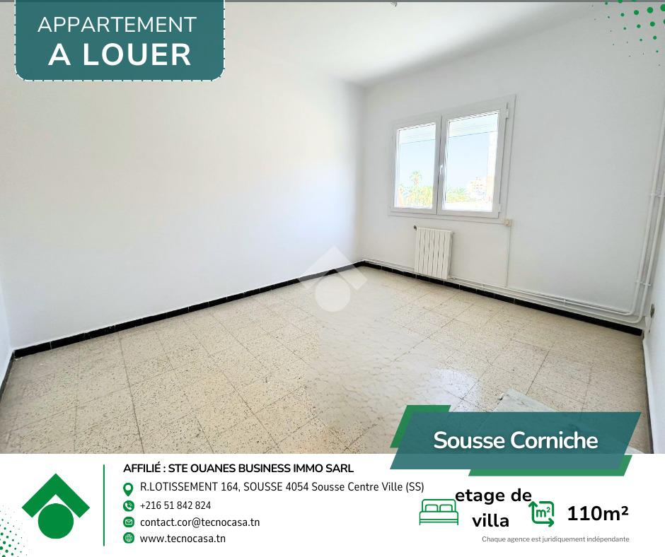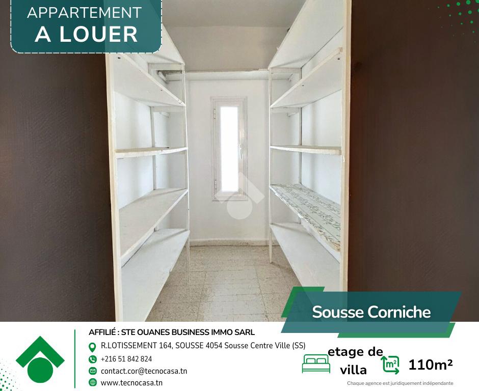Un étage de villa spacieux, non meublé, situé à la Corniche dans un emplacement stratégique, sécurisé et bien entretenu.