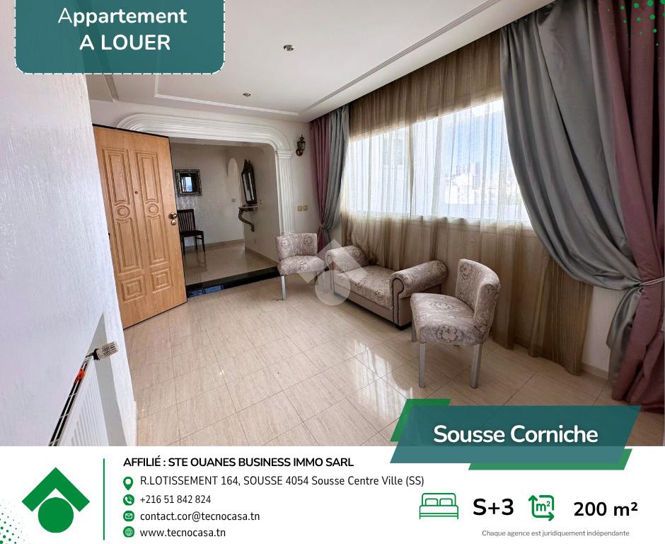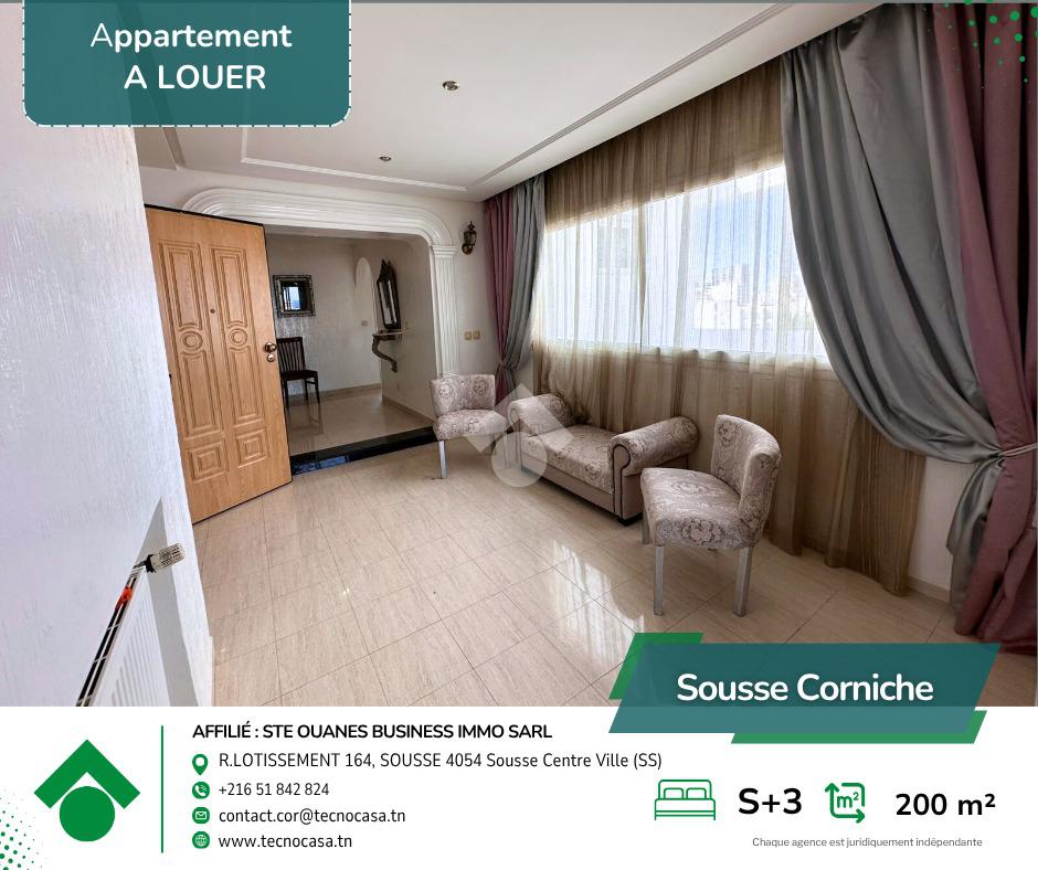 À louer – Spacieux appartement S+3 haut standing – Quartier résidentiel