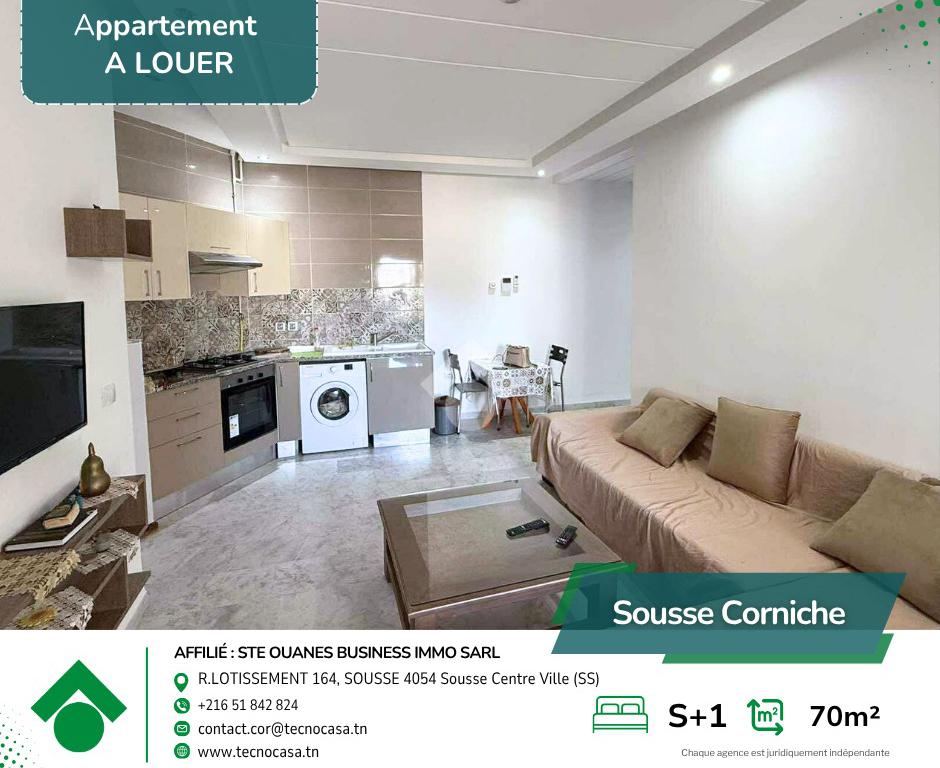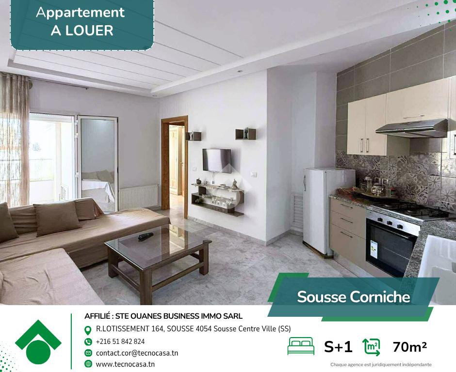 Situé au 1 étage d’une résidence haut standing avec ascenseur, cet élégant appartement S+1 meublé offre un cadre de vie confortable et raffiné, dans un quartier résidentiel calme et recherché.