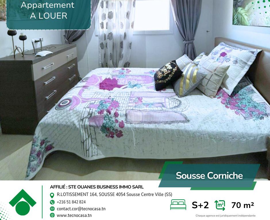 Cet appartement S+2 situé à Panorama Taieb Mhiri, au sein d’une résidence bien entretenue avec double ascenseurs, dans un quartier résidentiel calme et sécurisé.