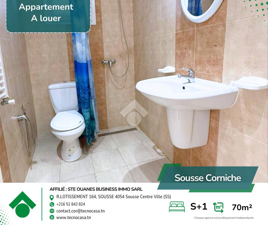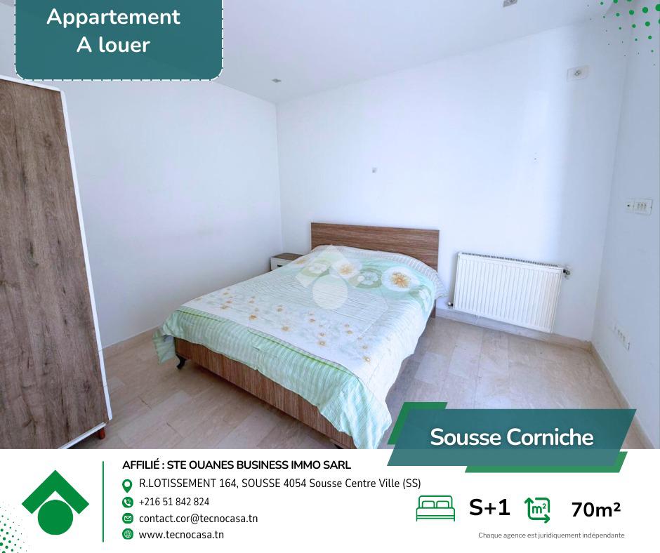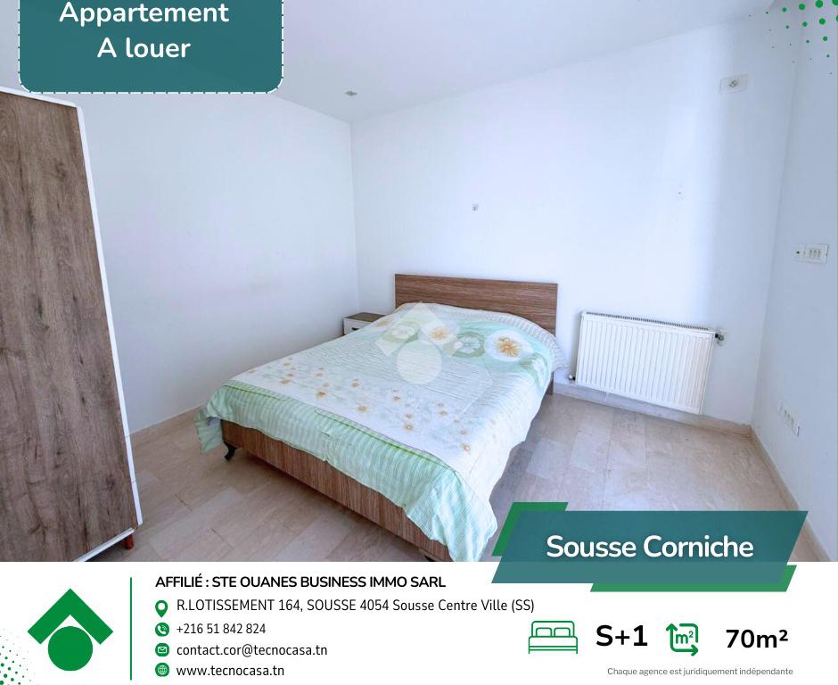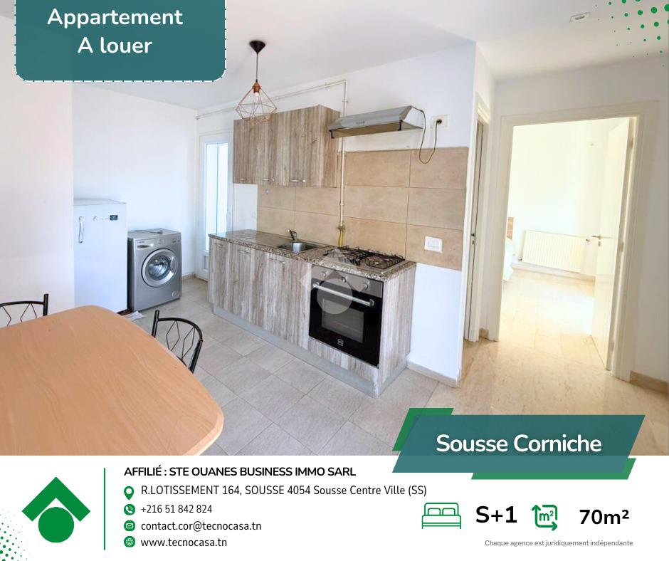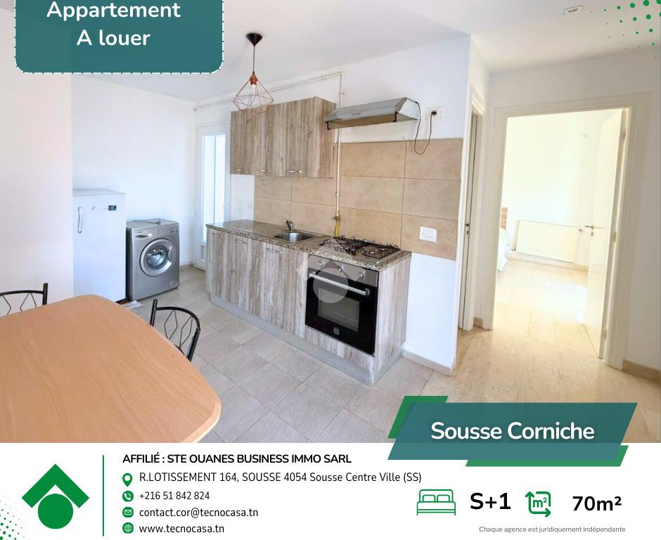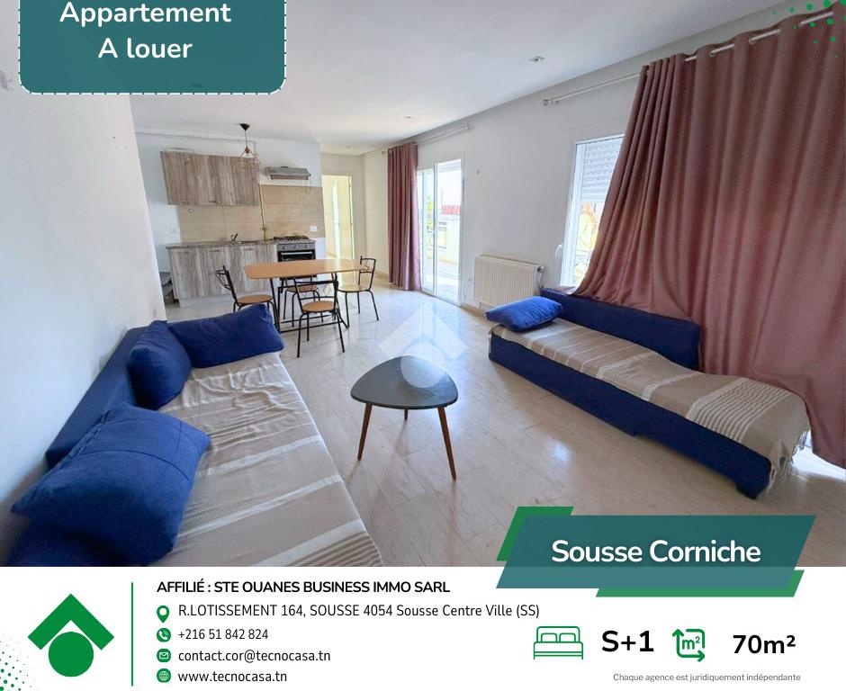 Situé au 2 étage d’un immeuble bien entretenu, cet élégant appartement S+1 meublé offre un cadre de vie moderne et confortable, parfaitement adapté à un quotidien agréable au sein d’un quartier résidentiel calme et très recherché à la Corniche.