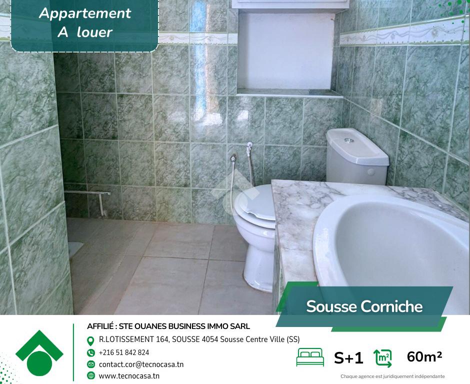 situé dans un excellent emplacement dans les zones villas de la Corniche, au 3 étage, dans un quartier calme et sécurisé.