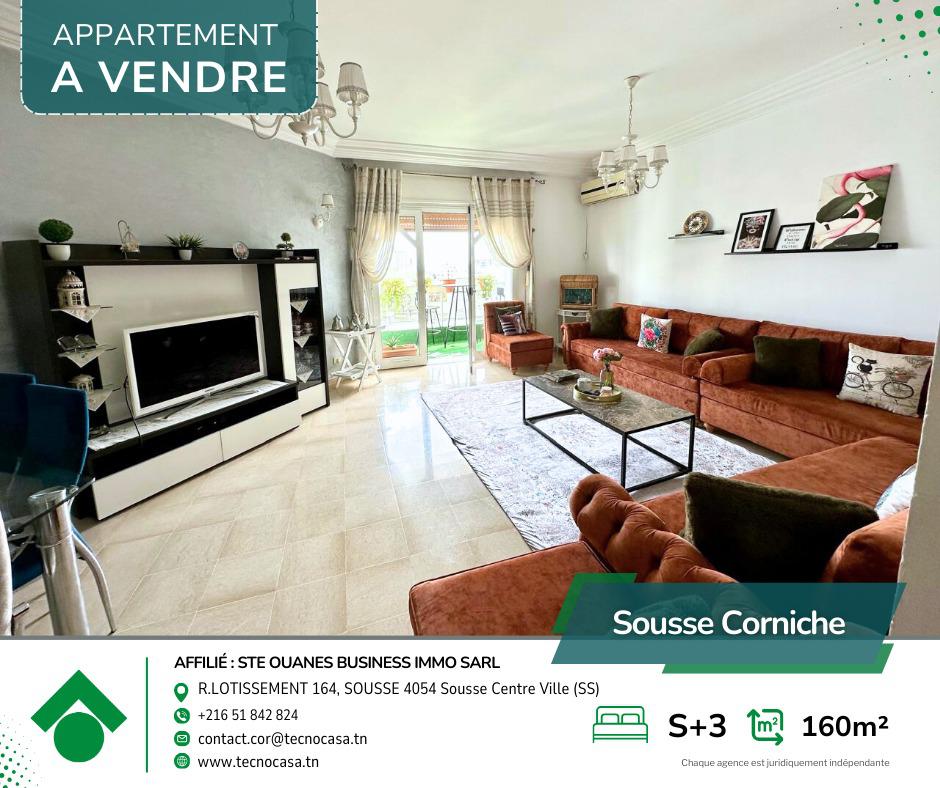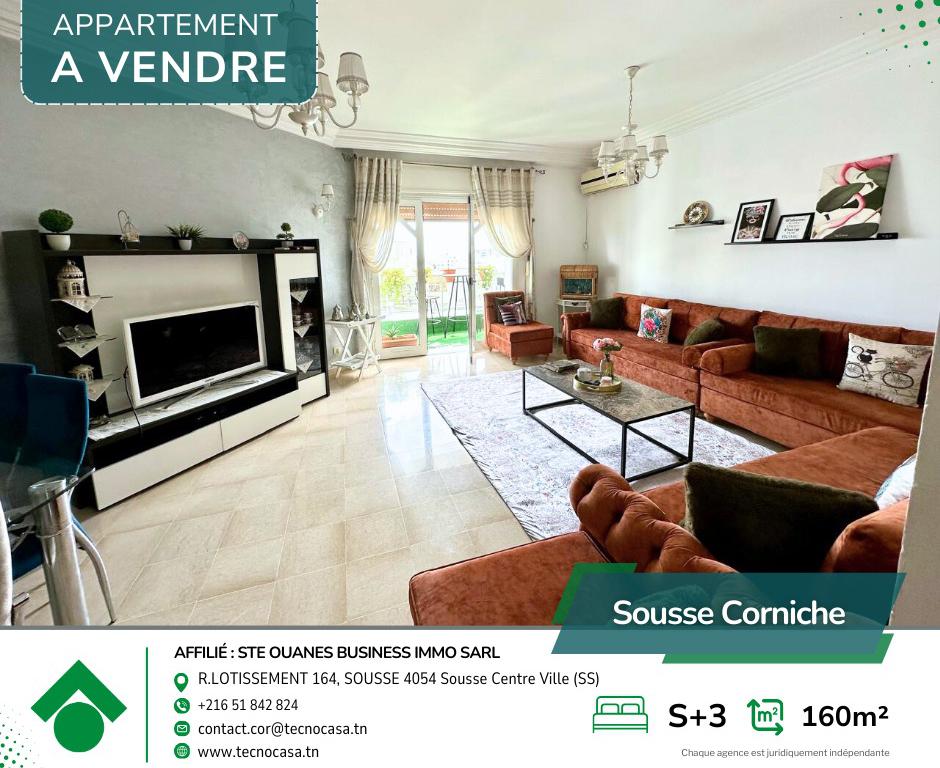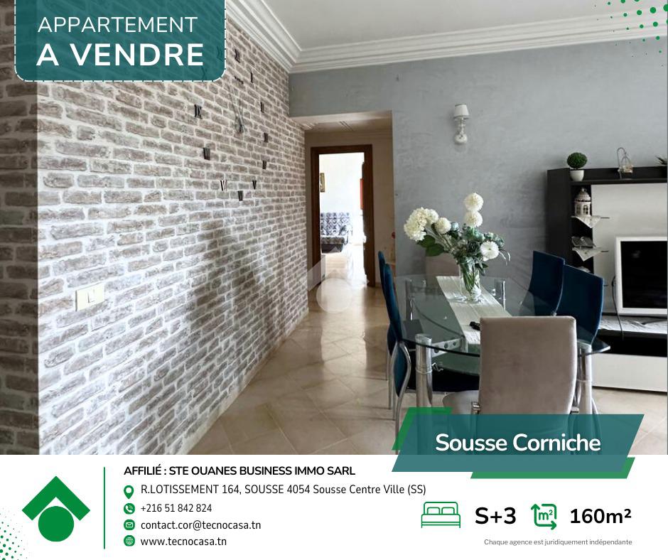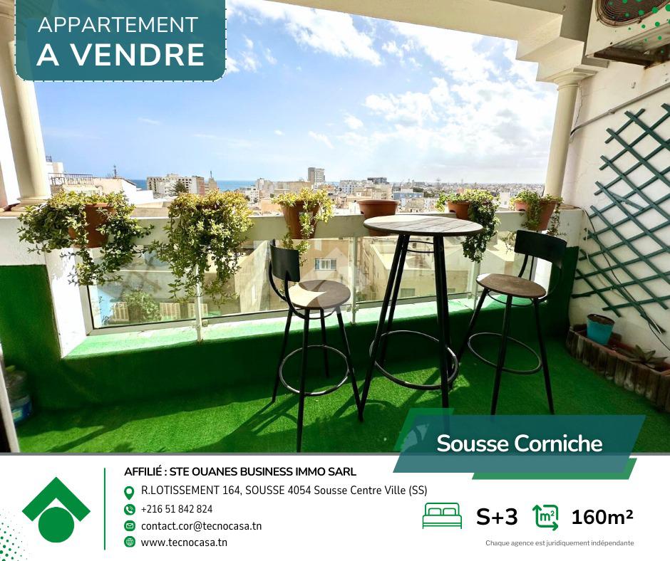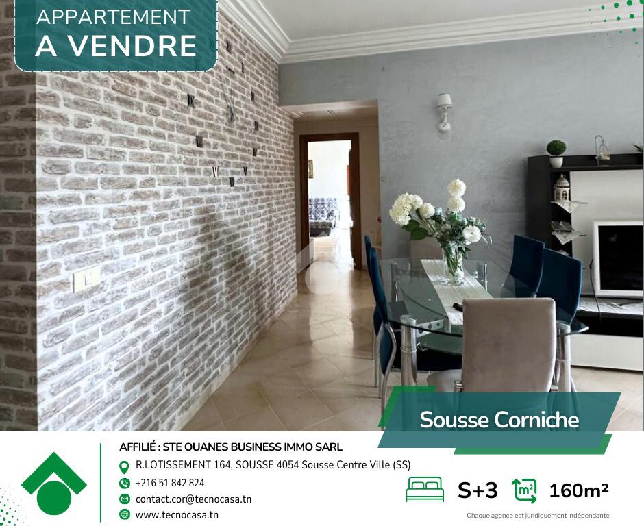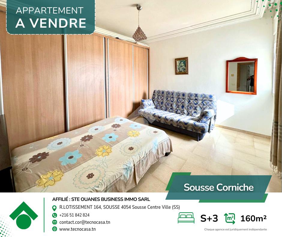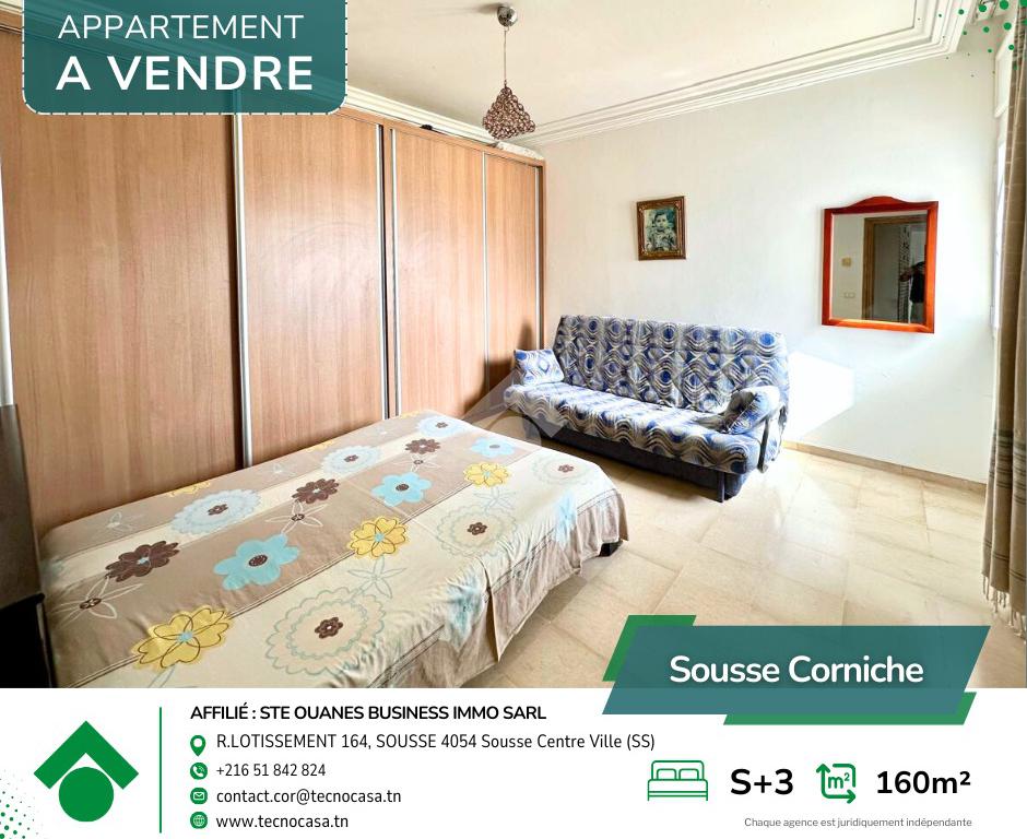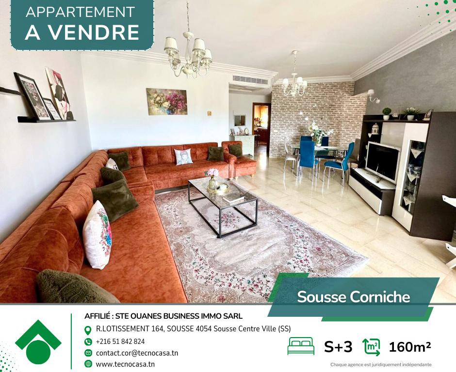 Situé au 7 étage d’une résidence sécurisée avec ascenseur, cet appartement S+3 bénéficie d’un emplacement privilégié en deuxième position de la plage, en plein cœur de la Corniche.