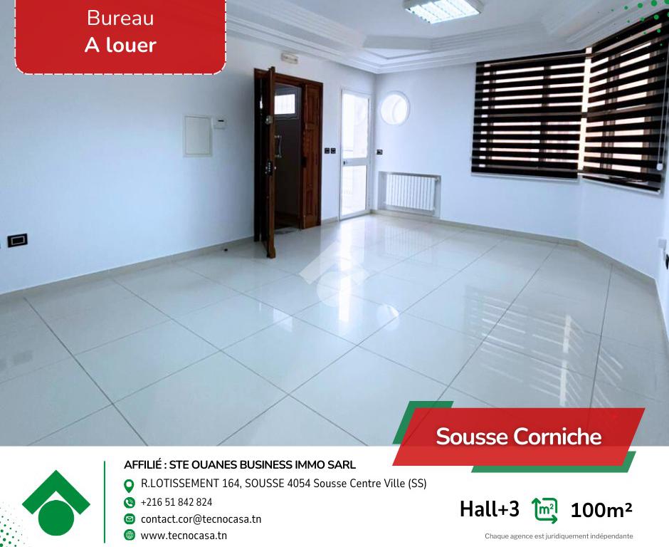 Situé au 1er étage d’un immeuble bien entretenu à Corniche, ce bureau est idéal pour toute activité professionnelle ou libérale.