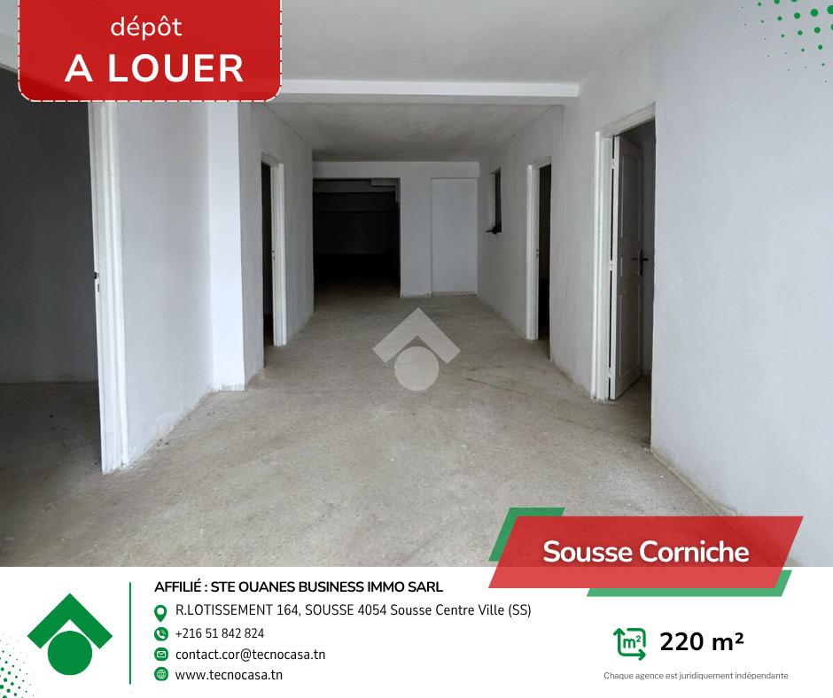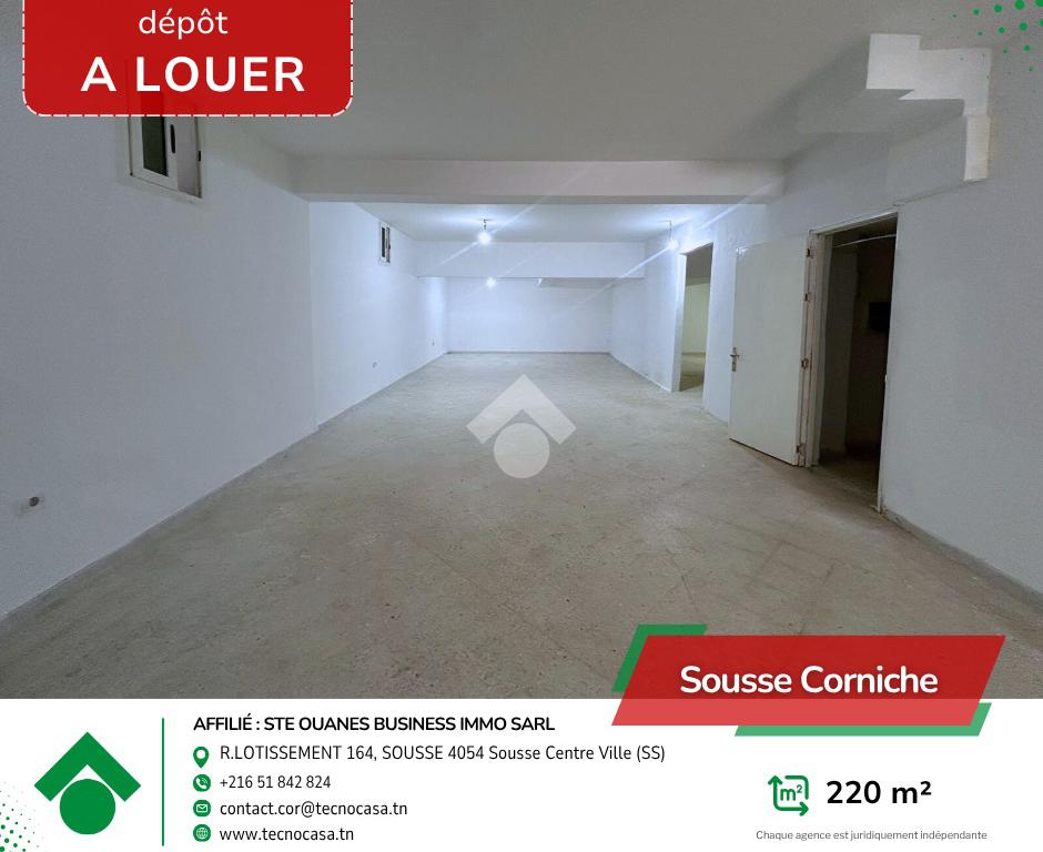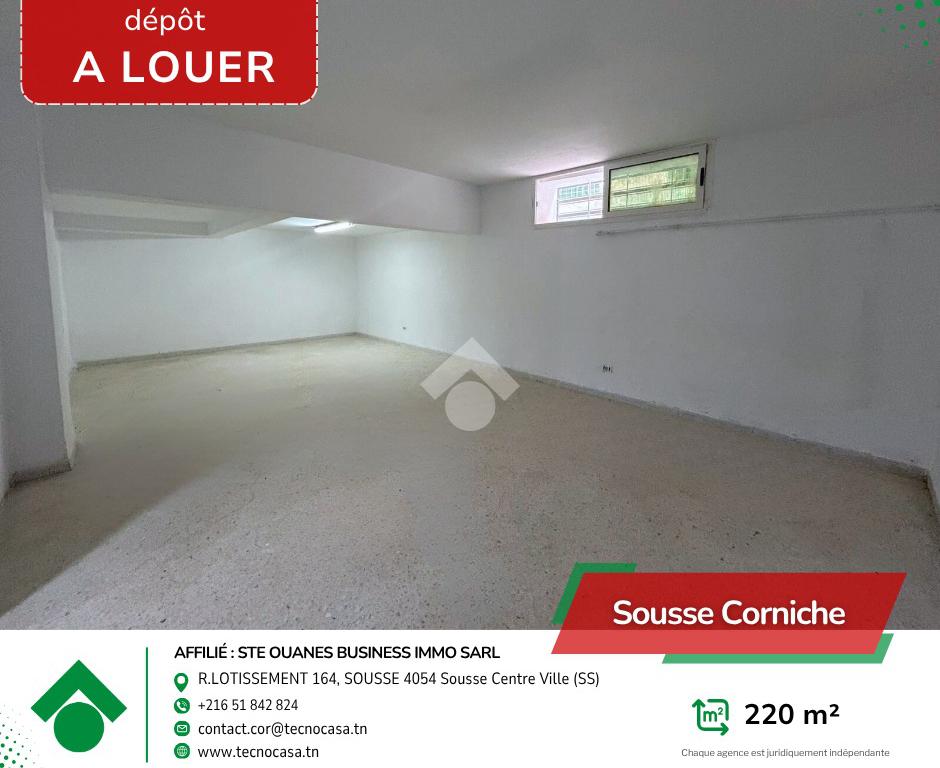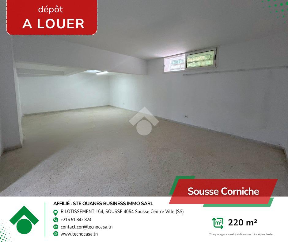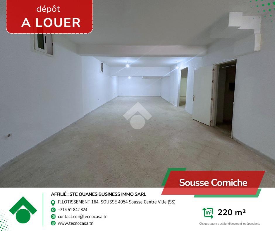 À louer un dépôt de 220 m² situé dans un emplacement stratégique à la Corniche. Idéal pour le stockage, les activités de grossiste ou toute autre activité professionnelle. Ce local bénéficie d’un accès facile, d’une grande hauteur sous plafond et d’une proximité immédiate avec les commodités et les axes principaux. Opportunité à saisir pour les entreprises à la recherche d’un espace fonctionnel, bien situé et polyvalent