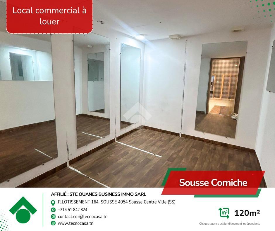 Nous vous proposons à la location un local commercial de 120 m², bien aménagé et idéalement situé dans un quartier populaire, bénéficiant d’un excellent flux piéton et d'une forte visibilité.