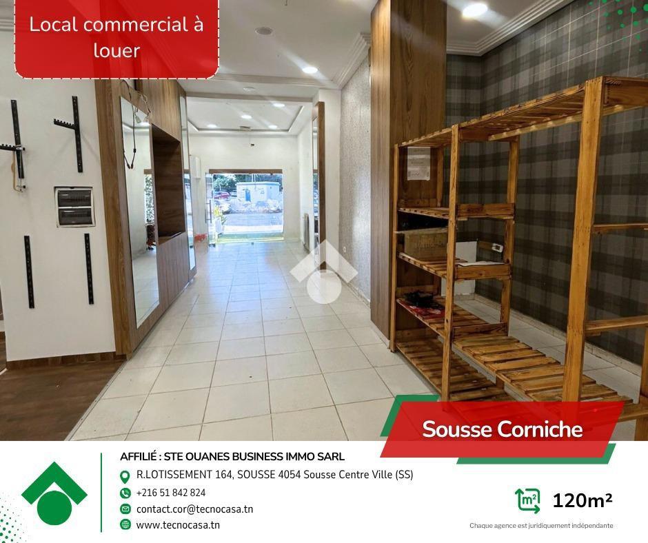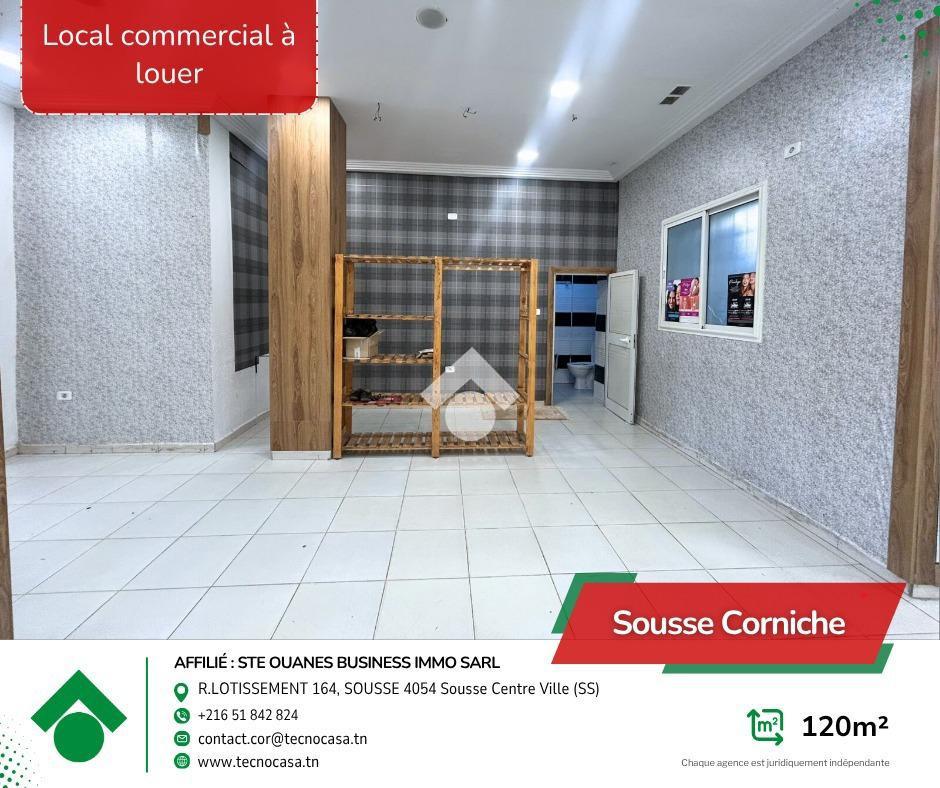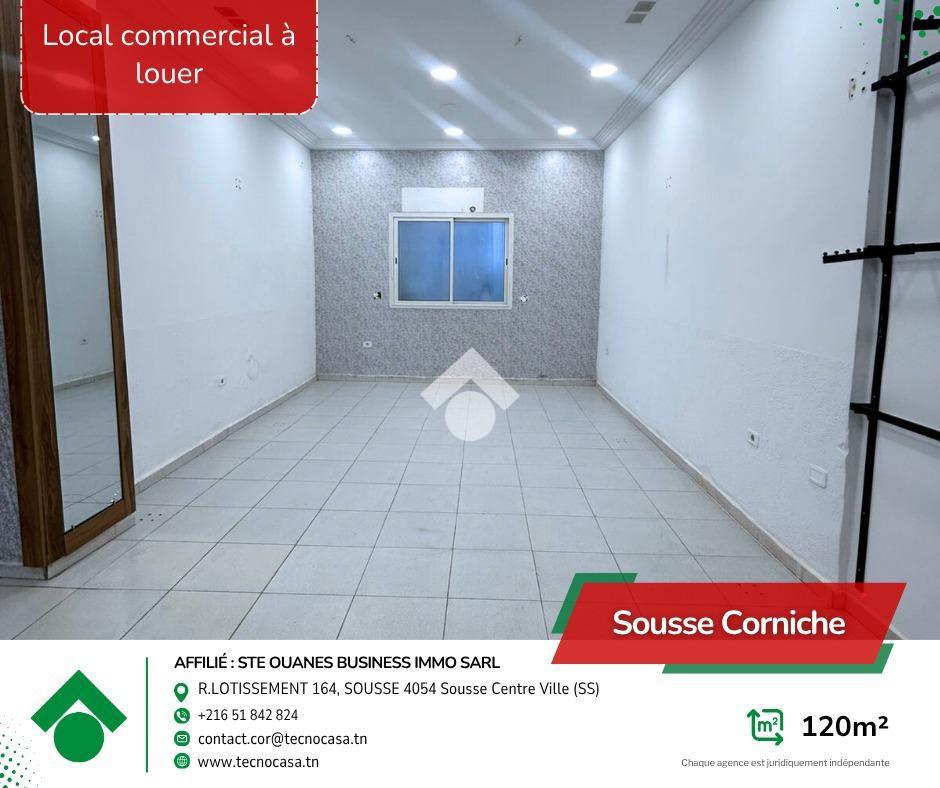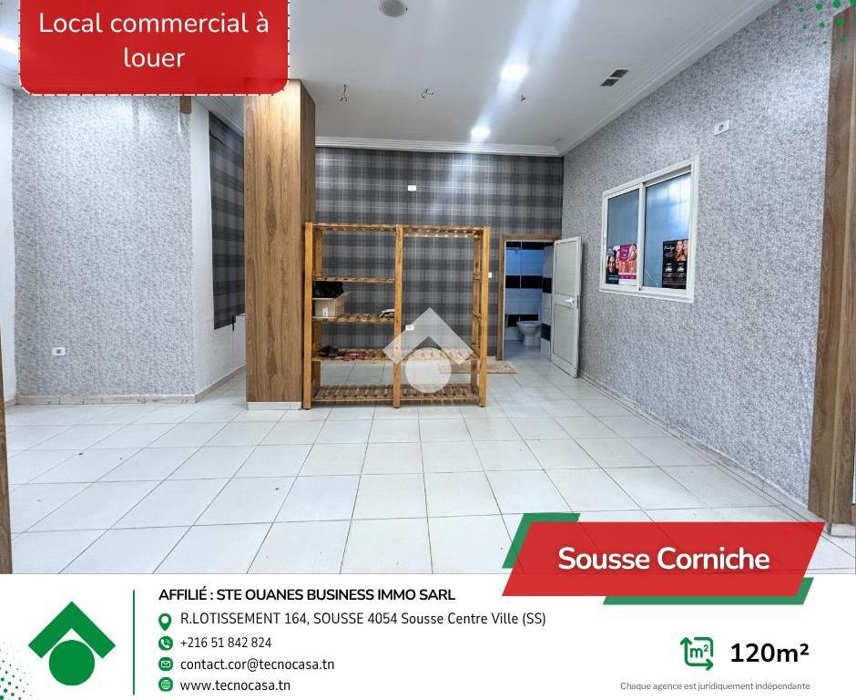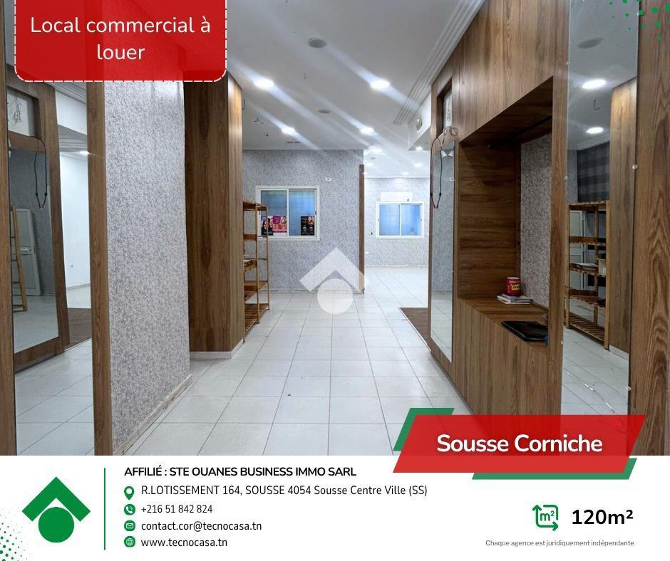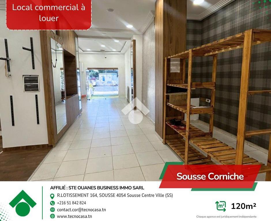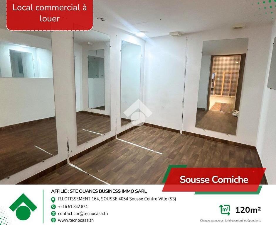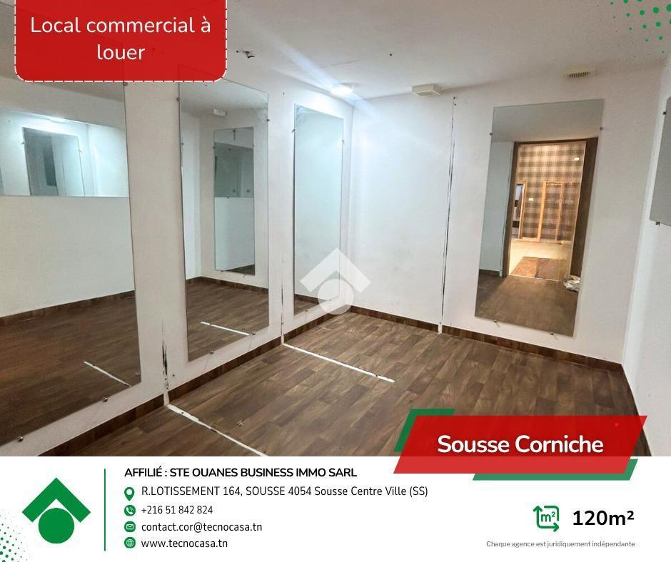 Ce local commercial de 120 m², soigneusement aménagé, bénéficie d’un emplacement stratégique au cœur d’un quartier dynamique a Corniche et à forte affluence, offrant une excellente visibilité ainsi qu’un passage piéton important.